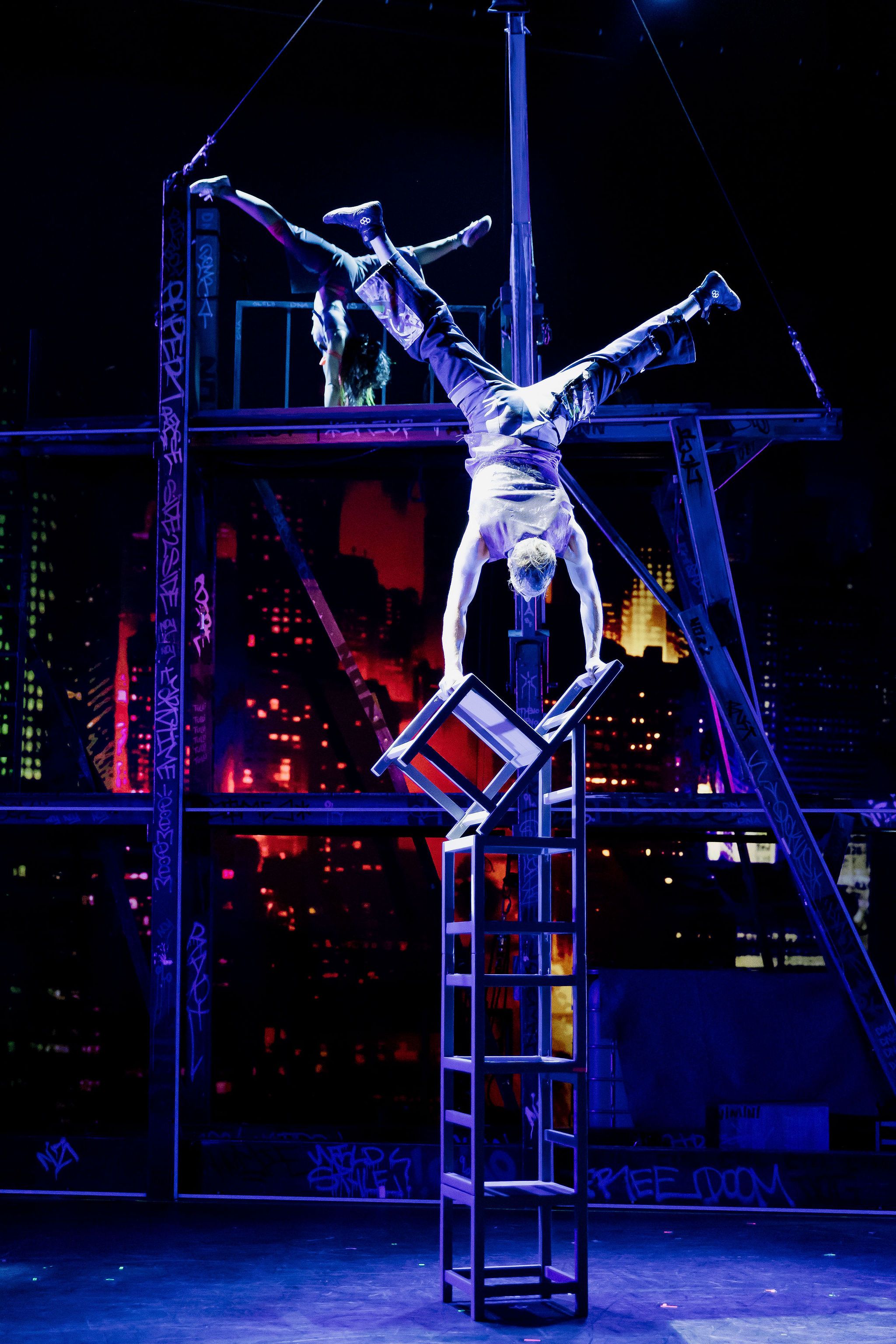 Depuis plus de trente ans, les spectacles de la troupe québécoise forcent l’admiration des spectateurs du monde entier. Sa performance ID Evolution célèbre la culture Street Art avec l’inventivité et la fougue qui signent son ADN, nous projetant dans un univers futuriste à la scénographie époustouflante. Ici rien n’est laissé au hasard : ni les prouesses techniques des dix artistes, ni l’enchainement des numéros (vélo trial, main à main, roue cyr, mât chinois, trampoline...) ou la dynamique chorégraphique (break danse, hip hop) ; ni le mapping vidéo ou la création lumières. Tout est parfaitement millimétré pour que l’immersion soit totale. Chaque scène pétille de sensations fortes, chaque paysage bouscule notre vision du monde, car au-delà des tableaux spectaculaires, il est question de la perte de nos repères dans un espace public aux contours brouillés. La ville, lieu de rencontres et de passages, exacerbe les relations, les sentiments, l’anonymat... dans la vie ou, comme ici, au coeur d’une bande dessinée vivante.